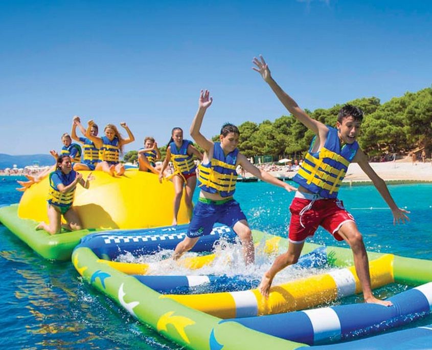vous y trouverez : catapulte, toboggan, balançoire, plongeoir, sauts d’obstacles, mur d’escalade,…
